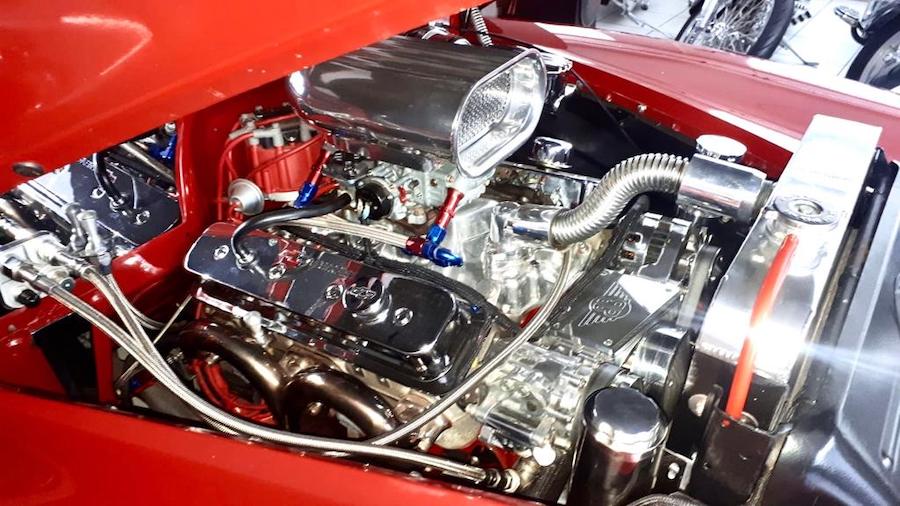 - Small-Block V8, 350 cui, ca. 350 PS, Holly Vergaser